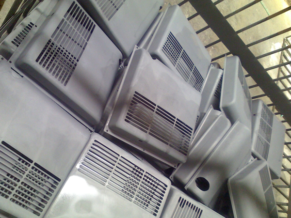 在中溫磷化液中,由于含有大量氧化型促使劑,只要槽液不是大負荷連續操作,一般不會產生Fe2+過量問題,Fe2+形成磷酸鐵沉渣。上圖為使用中溫磷化液的工件。